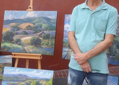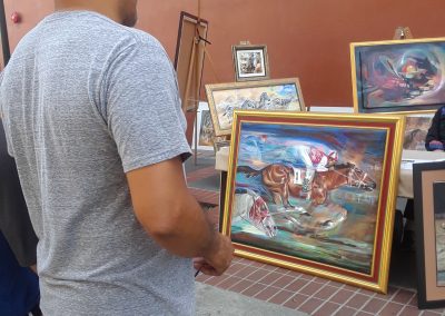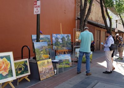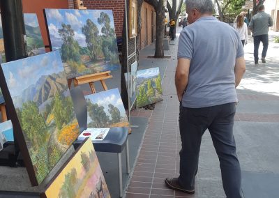 The walkway just outside the historical building was transformed into an art gallery with top visual artists – Lauren Dohring, Becky Mate, Wayne Weberbauer, Nico Vosloo and Lynda Hubbard. Many stopped and looked at the art in strong interest, and talked with the artists about their paintings.