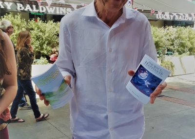 Throughout the day passersby were wished “Happy World Art Day” and invited to enjoy the art and music. They thanked us as they were also handed a copy of The Way to Happiness book, a common sense guide to better living, some with custom covers done by our artists. 300 books were handed out by Barbara Cordova Oliver, Kate Carlini, Andrea Zastawny, Daisy Alvarez and Tim Corbo.