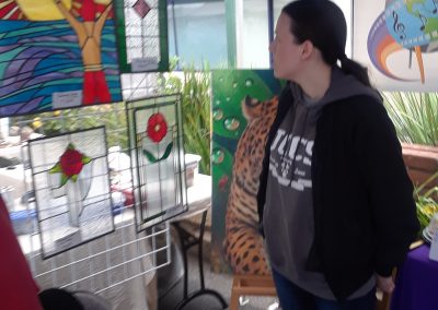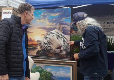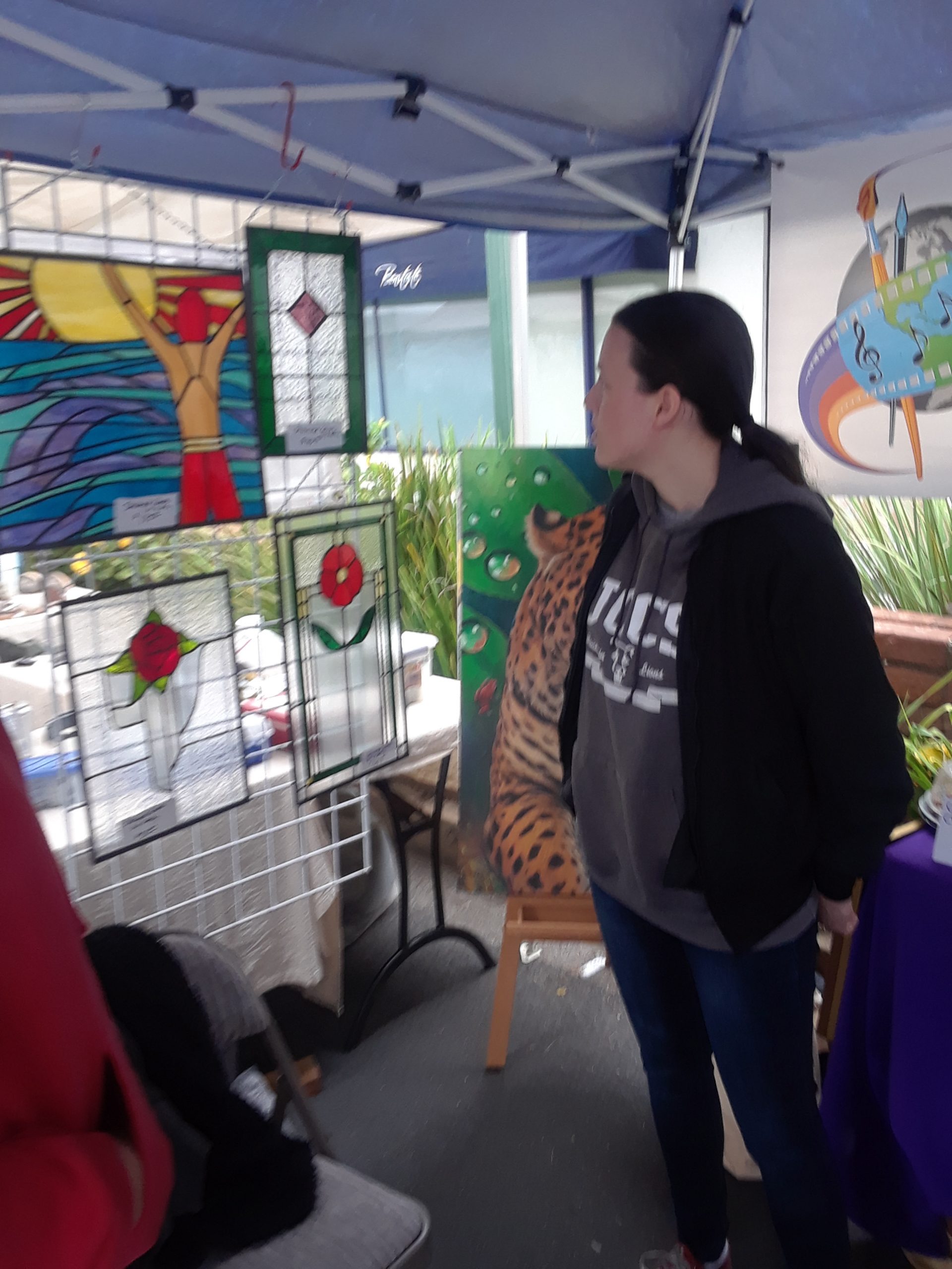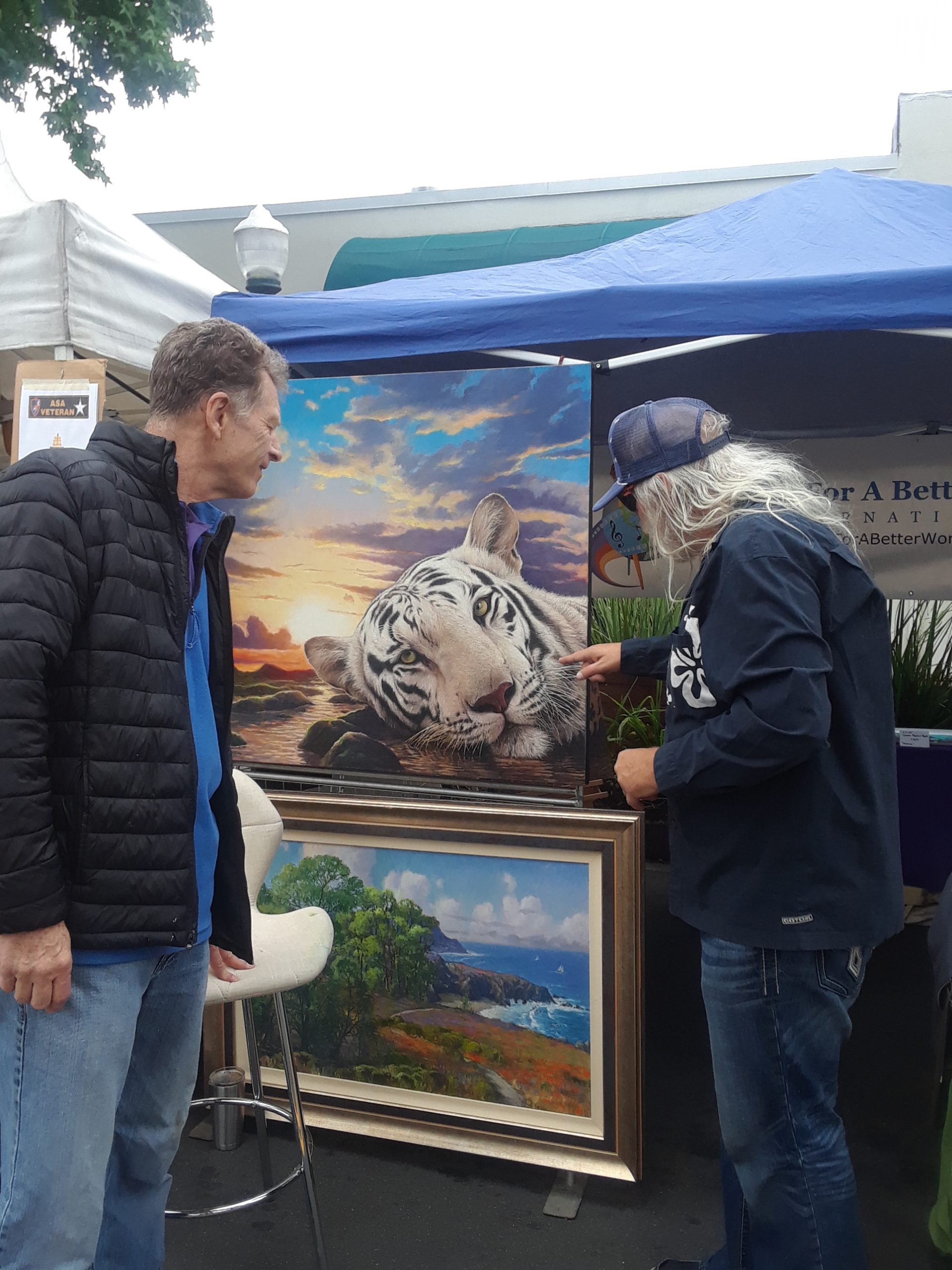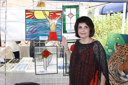 Guests were drawn to the booth as they were greeted by a realistic painting of a white tiger done by fine artist Wayne Weberbauer. Inside were stained glass pieces and digital art by Kathy Tollman, paintings by Becky Mate and Mina Prieto. And Mission of the Artist books and CDs by Barbara Cordova.
