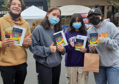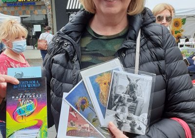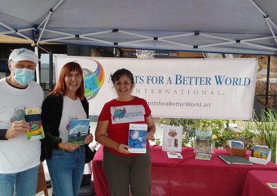 Artists for a Better World had a booth at the Montrose, CA Arts and Crafts Fair Oct 23 and 24. Thousands came out to see the beautiful art that adorned several blocks in the city. AFABW attracted numerous artists and art supporters. We welcomed them to see the art, and also handed out 365 of our custom cover The Way to Happiness books and books with cover art from our members – as well as 55 Good Choices books for kids- We also got several contacts for our mail list -and did a survey to find out what their goals are. And we handed out our brochures with all we have to offer to artists – We were happy to sell several pieces of art too. The tone of the fair was uplifting and inspiring and it was great to be back out in the world meeting lots of talented artists –