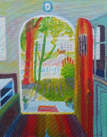 Members set up their booth at the fair displaying works from several artists. We displayed the art of Lynda Hubbard and Nico Vosloo and Becky Mate. Becky unveiled her latest painting called “Welcome” which was completed the night before the fair. Lallah Rowe displayed her fantasy novel The Flame of Magic.