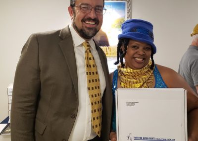 Afterward, everyone proceeded downstairs to the theater for the Human Rights Speakers and concert. The opener was celebrity musician Richie Onori, who spoke and performed his “Song for Humanity.” The keynote speaker, Dr. Ahmed Soboh, Chairman of the Islamic Shura Council of Southern California, discussed the atrocities faced by his people and the necessary actions to address them. He was followed by Julz Allender, President of Youth for Human Rights California.