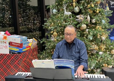Javier Medra, a member, enhanced the atmosphere with holiday songs on the piano. Guests from diverse ethnic backgrounds attended the festivities. The dinner provided an excellent opportunity for networking and forging new friendships, where artists and neighbors could connect.