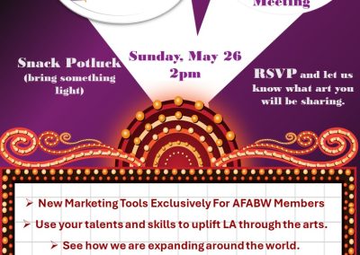 Then LA chapter Dir Lallah Rowe talked about how AFABW needs to become “The New Hollywood” and gave a presentation about the history of Hollywood and how the Purpose is still there, just buried. All were in agreement. She also read an impactful poem. And went over future events for the LA chapter to participate in such as the Montrose Fair, Monthly showcases at The Sunland Mission, and other events.