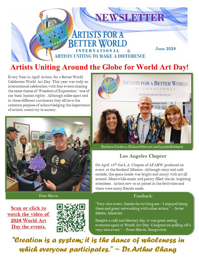 Then we went into the studio where AFABW Founder Barbara Cordova AFABW went over International news such as World Art Day – and the 4 events that were produced by the group, and captured on a special video.