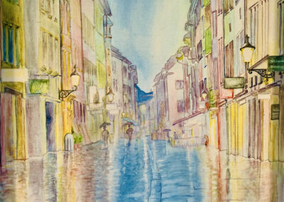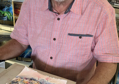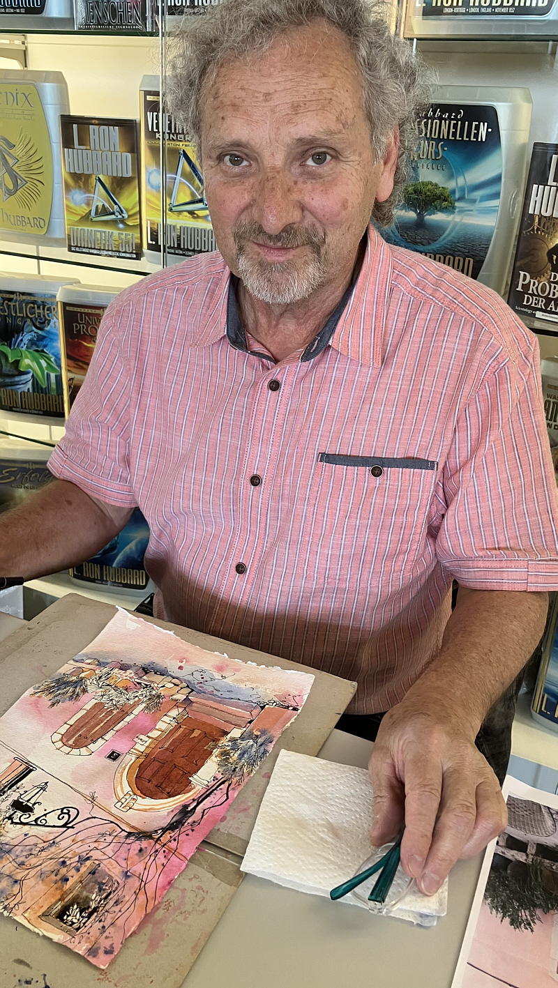 Franz did a live painting of beautiful Italian scenery. The atmosphere was further elevated by live saxophone music performed by Kurt Wicki and opera singer Laura Ansaldi.