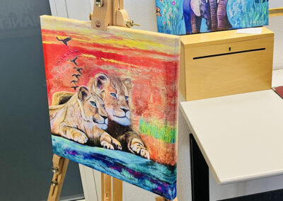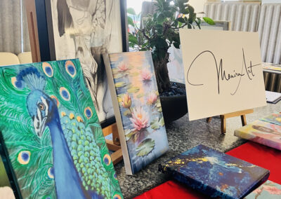 There were 60 in attendance. Artwork sales generated a total of around 2000 Euros, which was donated for social betterment campaigns, that really shows how art can be used to make a difference in the world.