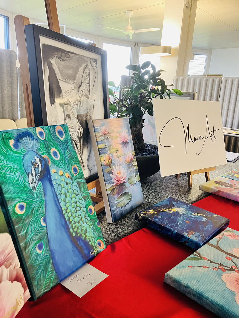 The event featured an art exhibit by Amelie Egenolf, Alcindo Moreira, Claude Sandoz, Ursula Kindlimann, Franz Habermacher and Juraj Lipscher whose works captivated the audience with their inspiring messages and vibrant expressions.